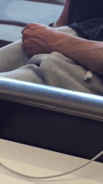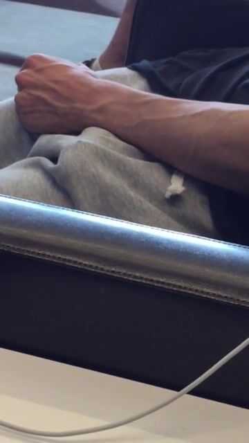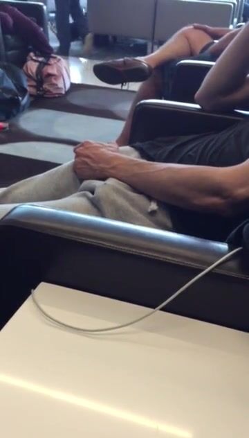The guy sitting beside him did not have cold feet to touch himself in an airport full of people.