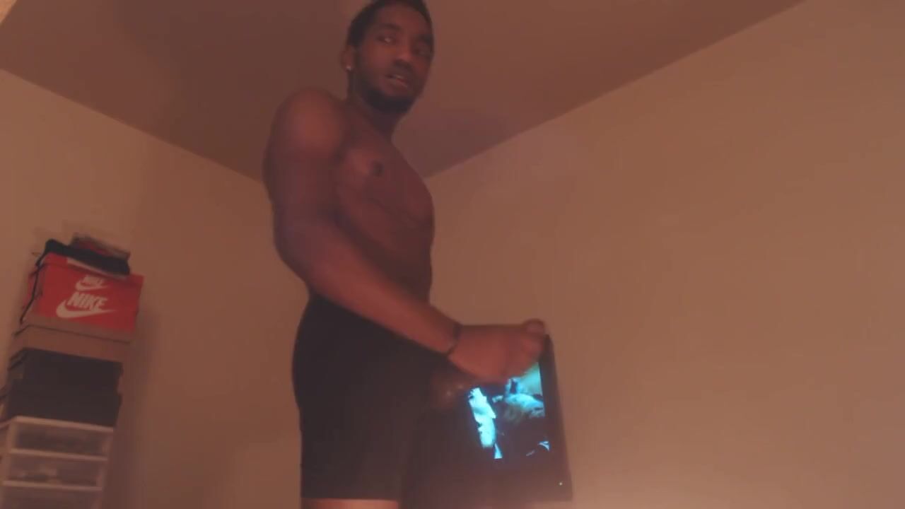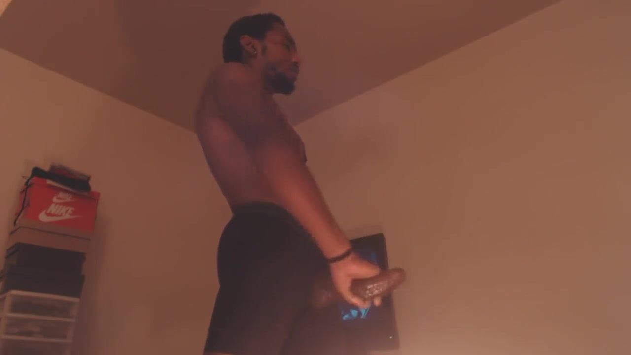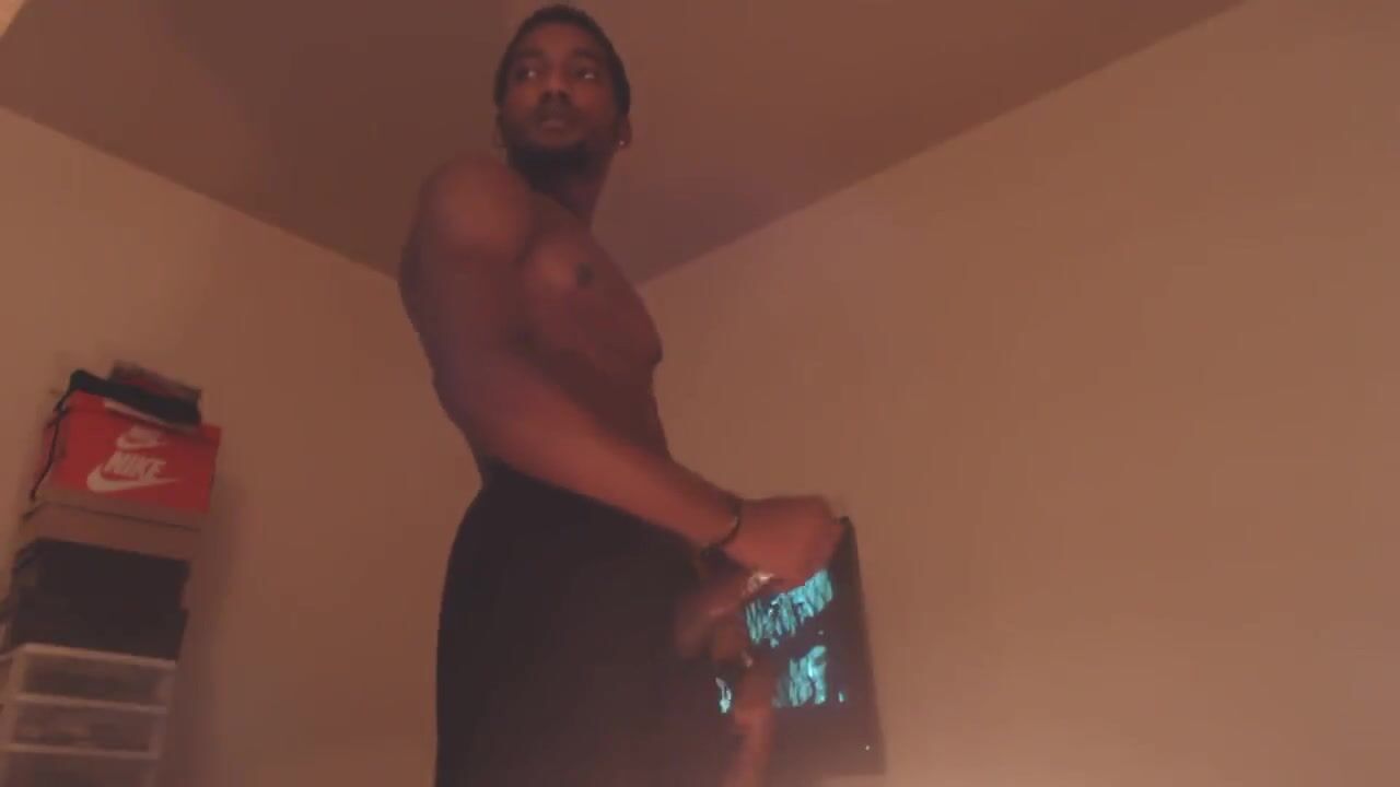 "A sexy black man masturbates."