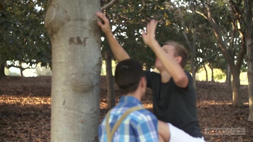At the park today, big muscular guy Wyatt Walker is flirting heavily with young, boyband-worthy Noah White. They are enjoying each other's company and reveling in their beautiful youth.