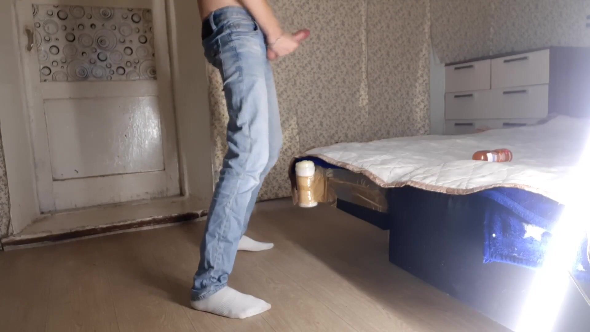 Guy after work hard fucks an artificial anus