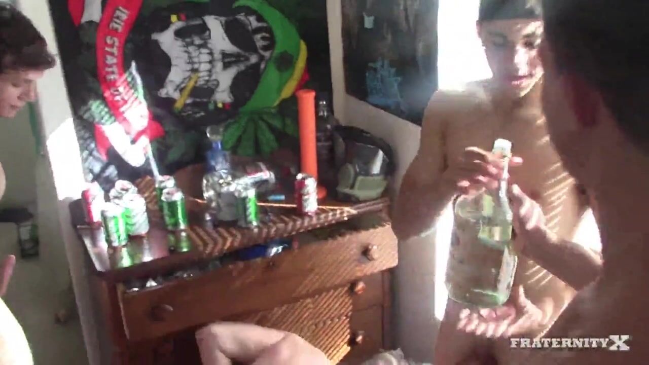 "Hard and unrelenting beatings in this brotherhood. The new guy is demolished by all the guys and even takes a pounding. "