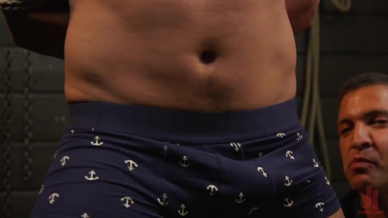 A helplessly bound submissive endures extreme bondage by lustful masters. They shake his cock with a dildo and use nipple clamps. Hardcore fetishism with a bonus of anal sex in suspension.