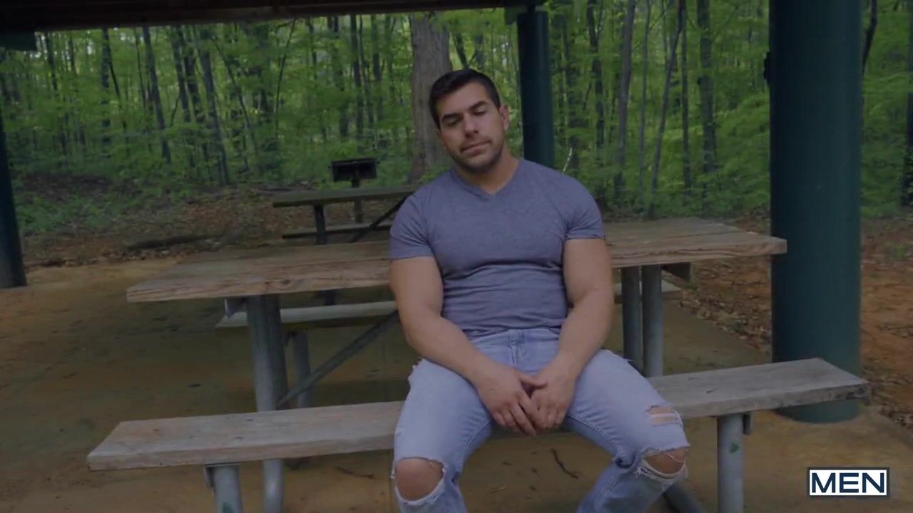 Damien Stone's boyfriend broke up with him just in time for his birthday, and the muscular guy obviously feels quite down. Fortunately, Damien has good friends who are ready to do anything to cheer up their buddy, even if it means hooking up a stranger and tying him naked to his friend's bed. The man they choose is Justin Matthews, who accepts the plan with joy, offering Damien the birthday gift he needs to get out of his depression. Damien fucks Justin's tight ass on the bed until he shoots a big load of creamy jizz all over Justin's chest.