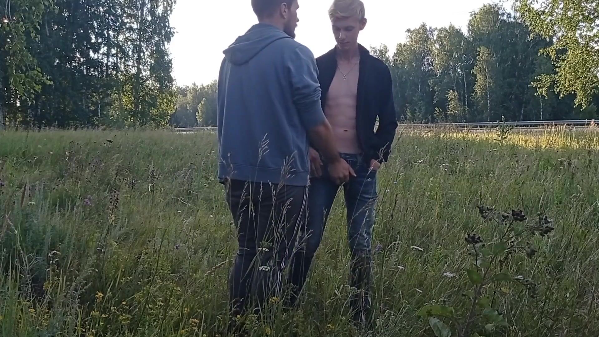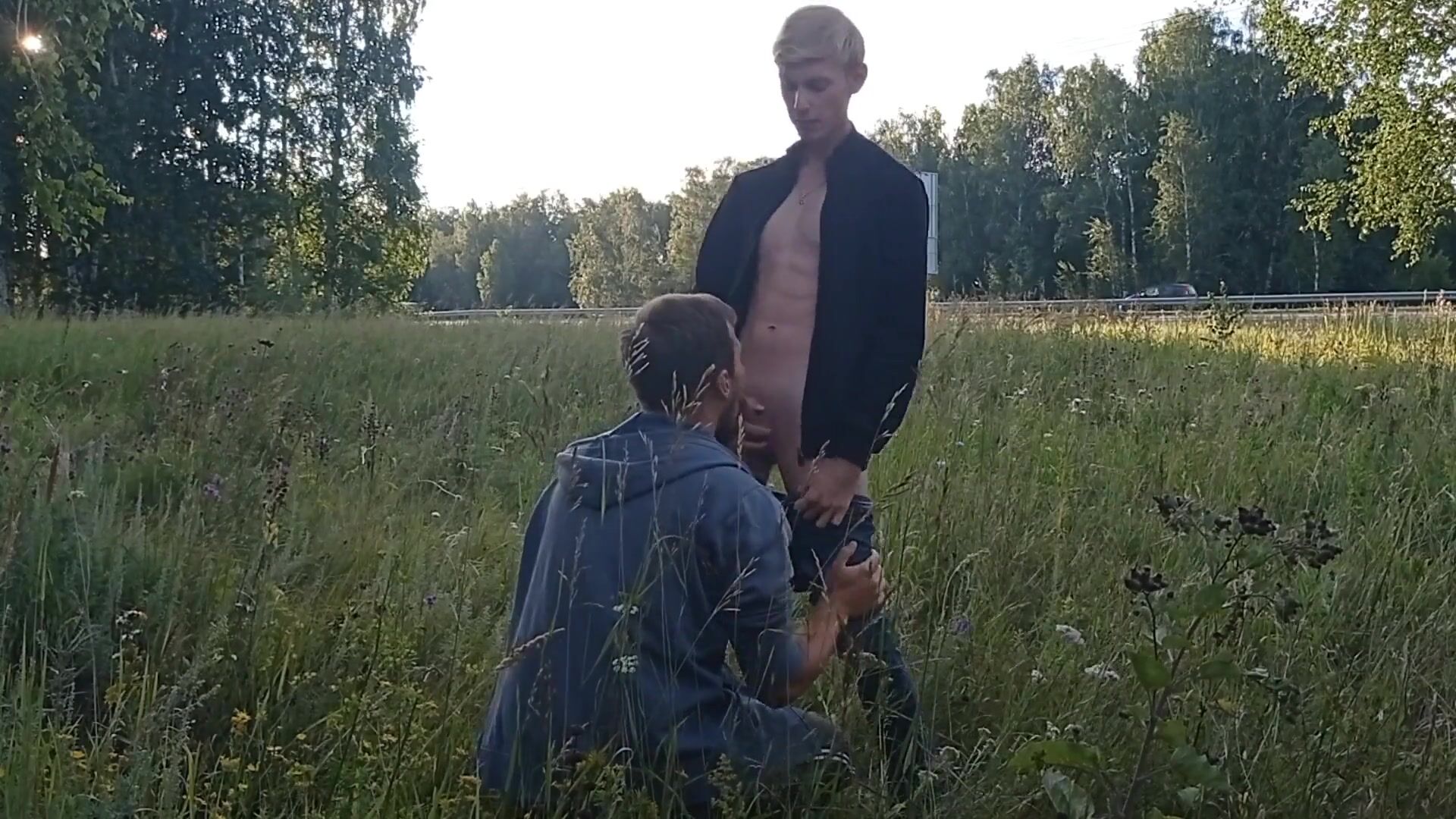 Blowjob and handjob near a busy highway