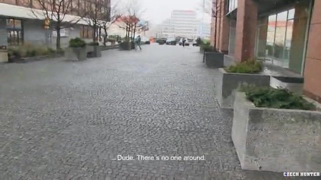I went to the town hall today to obtain my new driver's license. As you know, I never leave home without my small camera. In fact, the weather was again very bad since it was starting to snow. I did not let myself be deterred when I saw this guy passing by. He was not very talkative and when we finally started talking, he became a bit strange. Perhaps he simply did not want to talk to a stranger. However, I discovered that he had come to Prague to do his shopping. Certainly, there are more shopping centers here than anywhere else in the Czech Republic. And he was still a student and therefore always needed a little more money. Bingo He just met Mr. Extra-money. I was about to make some bad proposals, but I really did not know how he would react.