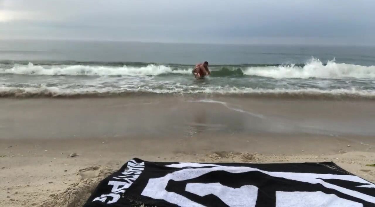 A handsome couple completely let loose on this deserted beach. They suck each other's cocks and eat ass while fucking each other in turn on the hot sand facing the turbulent sea.