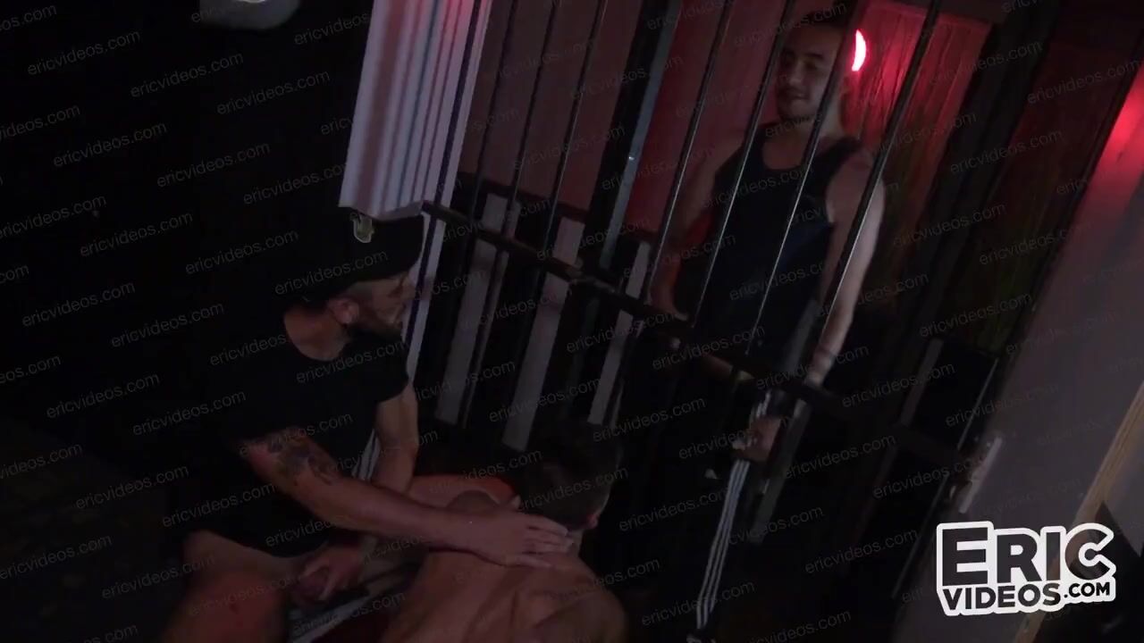 Three guys were caught having sex in the corner of the street by Shaïn, Juan Florian, Mathieu Ferhati and Philippe. He approached them quietly and put an end to their little sexual games. Excited by what he saw, he waited for a moment hoping they would join him, and that's exactly what happened. The four boys decided to go to a more secluded place: a Parisian cruising bar not far from there.