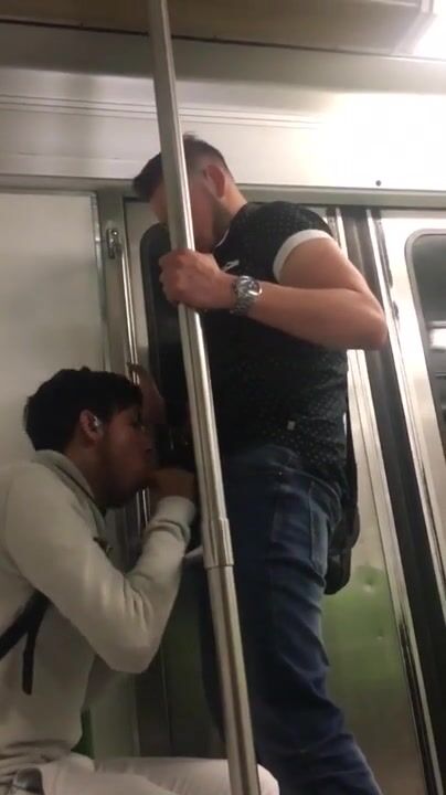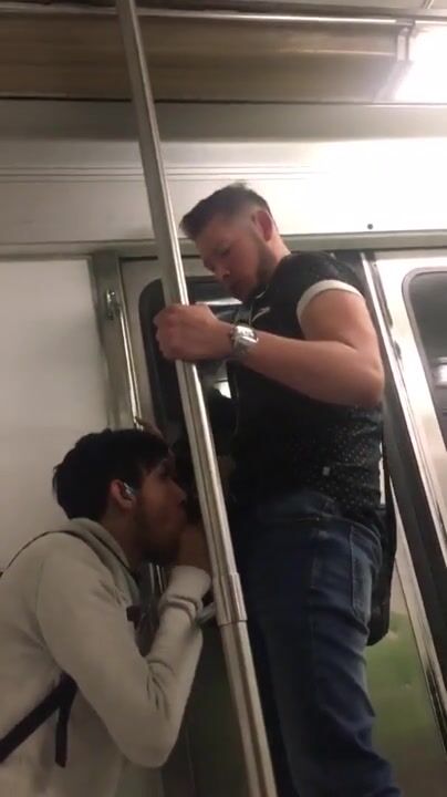 A man excitedly sucks my cock in the subway.