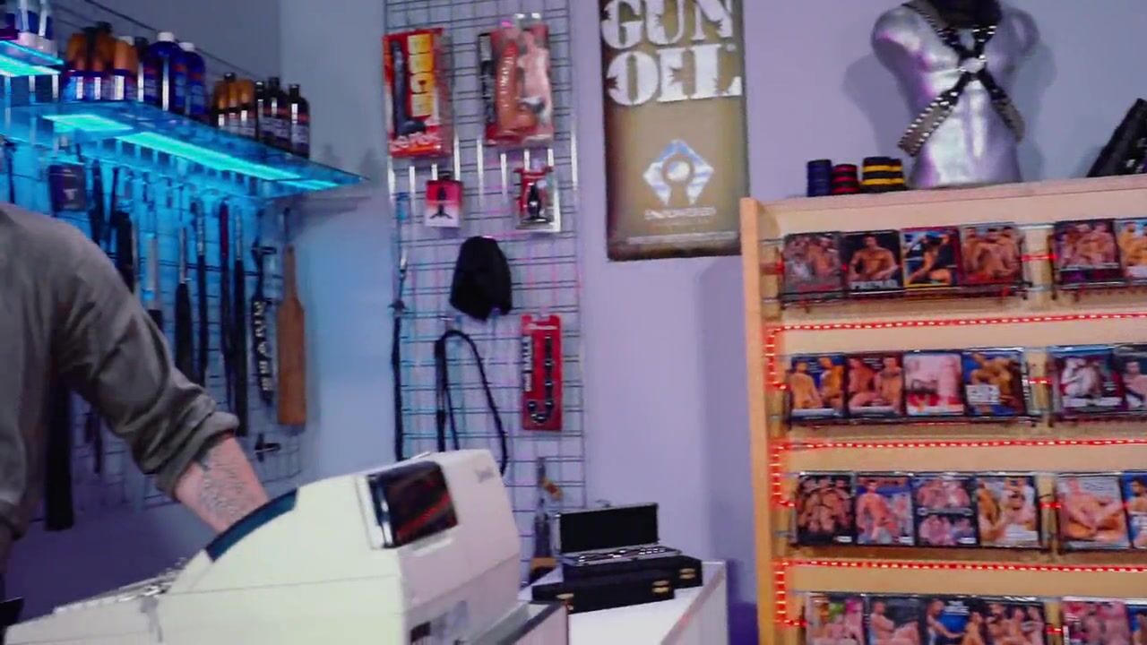 After testing a series of enormous dildos with Teddy Bryce seller, Axel Abysse moved on to the next stage by inserting his huge fists in his ass. In the middle of the sex shop, the seller got fisted.