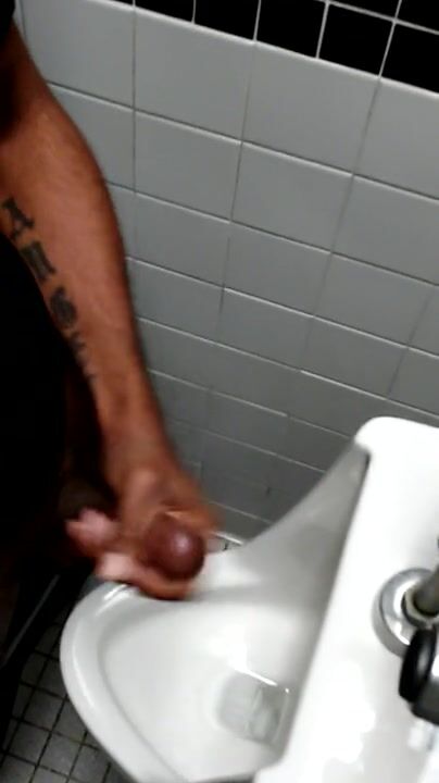 Clean-cut twink jerks off in public bathrooms, followed by a loud ejaculation.