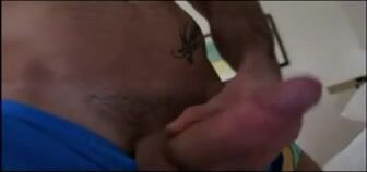 "The Latin guy jerks off before he sprays his load."