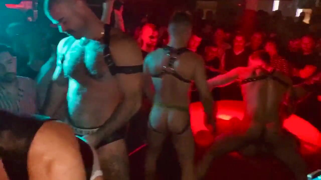 Gay Night Club Porn Party with Leather Bondage Gear - Hardcore Show in Front of Excited Crowd!