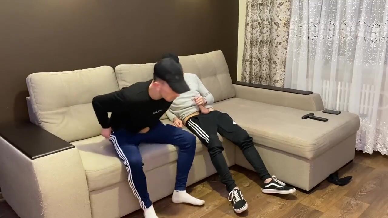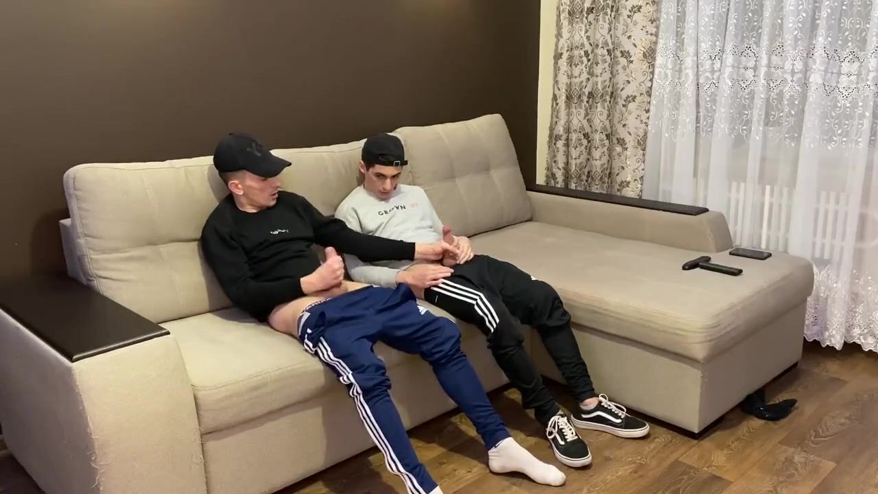 Two friends jerk off in sporwear