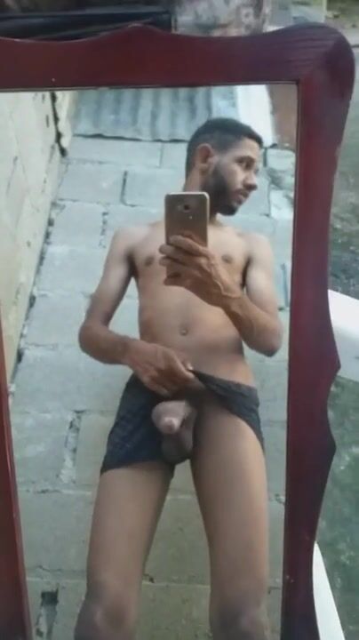 A young North African man ejaculates on his mirror while recording himself with his smartphone for Snapchat.