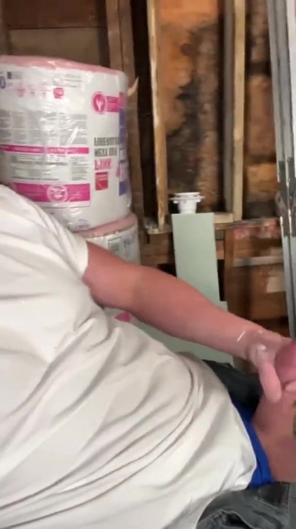 Construction worker solo male masturbation on job site.