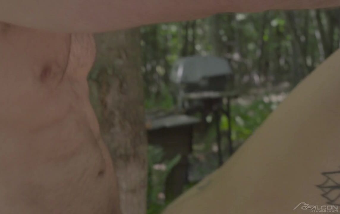 Jeremy London and Thyle Knoxx are walking through the woods when they stumble upon Gabriel Clark working shirtless in his barn. After showing them around, Gabriel gets a saw and leaves the couple in the barn. Thyle goes inside and grabs Jeremy's hard-on. Gabriel notices them having sex through a crack in the barn wall and pulls out his dick while he watches. Jeremy and Thyle know they are being watched, so Thyle starts sucking on Jeremy's dick while their new friend watches. Thyle is hungry for dick and invites Gabriel to join them so he can suck on both dicks. Soon, Gabriel is kneeling down eating Jeremy's crotch while Thyle sucks his dick. Thyle is horny and invites Gabriel to join them so they can all taste each other's dicks. All three take turns licking each other's dicks before Thyle slides his meat into Jeremy's butt raw. While Thyle kisses Jeremy, Gabriel comes up behind the train of kisses and inserts his dick into Thyle's ass. It's a frenzy of horseplay and oral sex in the woods that ends with Gabriel taking two loads on his mouth before spitting his own semen onto the forest floor.