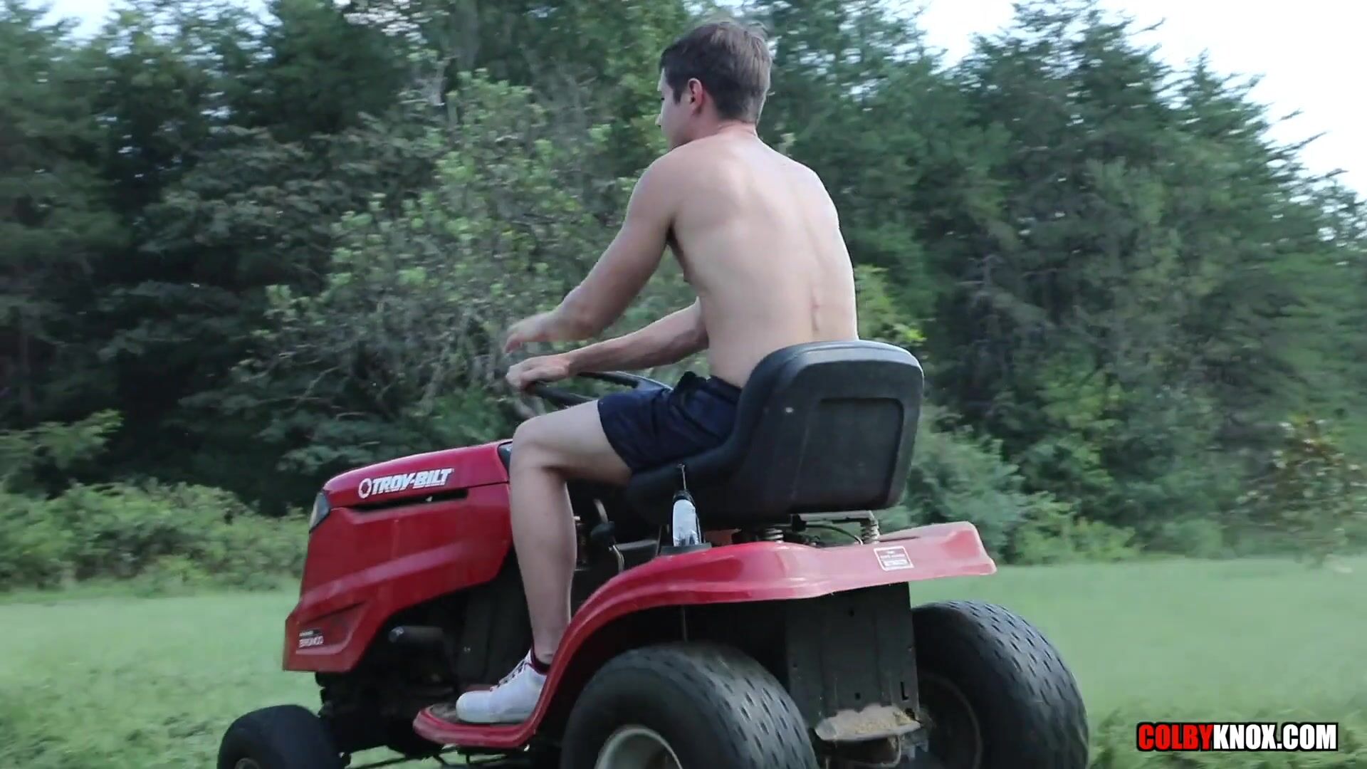 Redneck boys fuck over a lawn mower Bareback