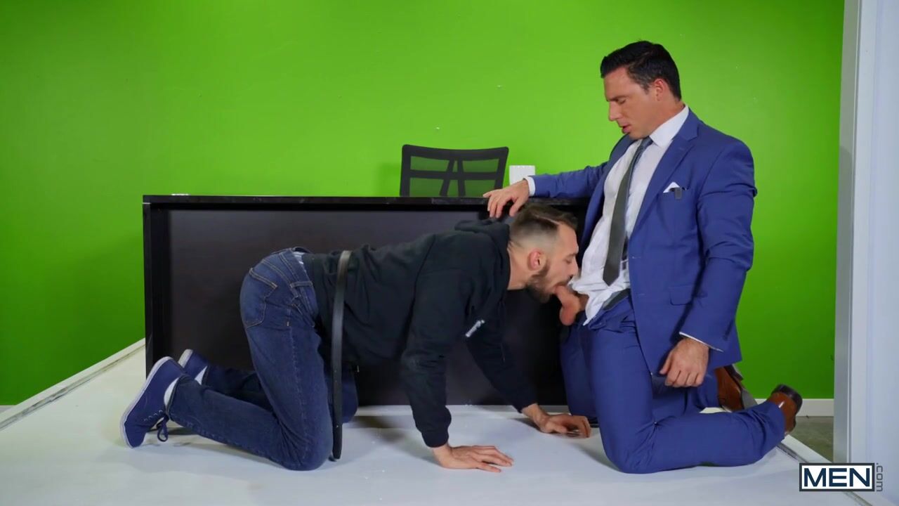 "It was a hell of a year, and on New Year's Eve, the news anchor Reese Rideout couldn't take it anymore, bursting into a live rant in front of the camera. His co-host begged him to wait until the ball dropped, but Reese called up Johnny B, the hot cameraman, and dropped his balls in his mouth! As their signal was cut off, Johnny sucked Reese's dick, then rode the anchor, and Reese bent over the newsroom desk to get pounded from behind. Reese pointed at Johnny's hole and licked it, then kissed him sloppily with a spoon, and Johnny came while Reese gently and deeply fingered him in missionary, then took his hot face. "