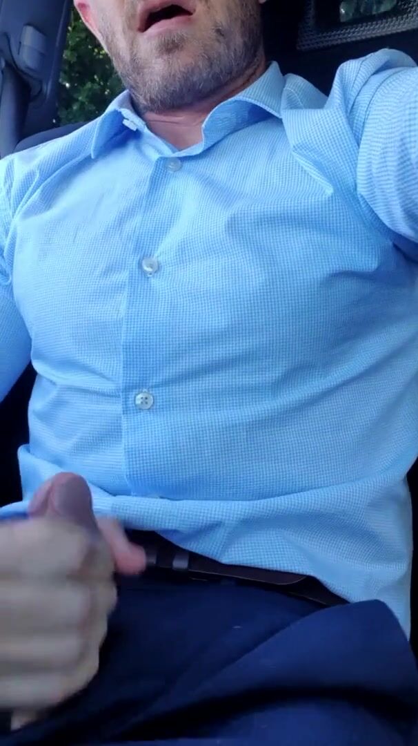Hot daddy, cums all over his suit in public car park