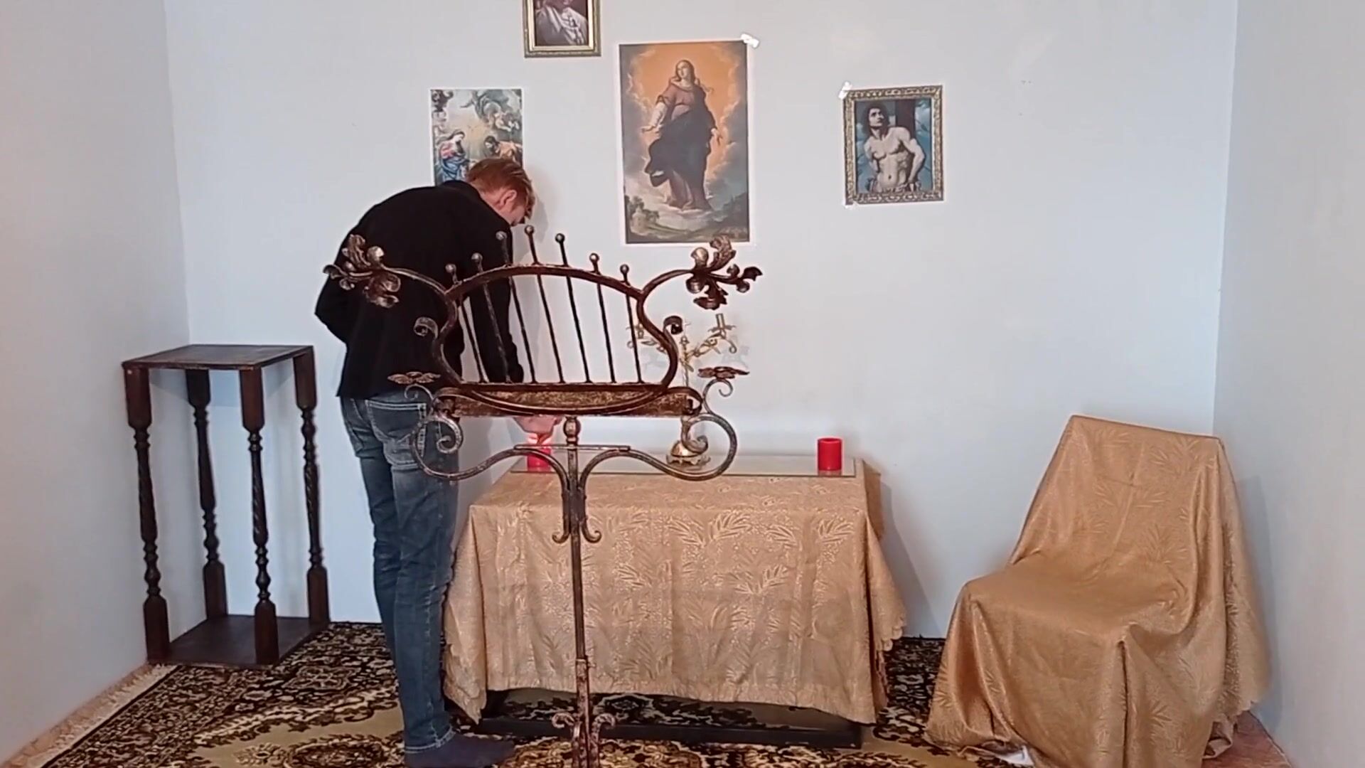 young priest cums in a catholic church