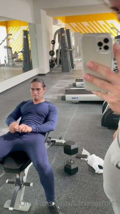 My boyfriend and I have a little show at the gym. I massage his dick through his tight sportswear and give him a blowjob.