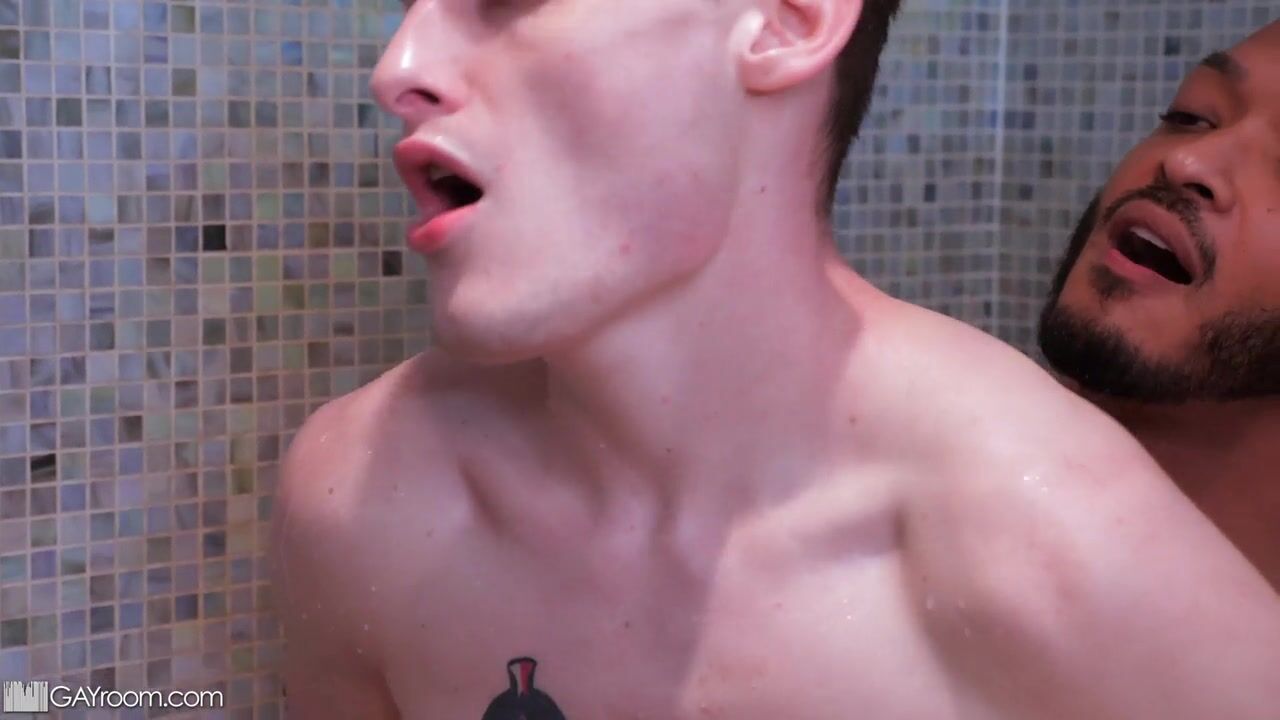 Josh Cannon's bubble bath minion receives an unexpected strip tease and a black muscular daddy. Dillon Diaz gets very wet in this impromptu ass fucking in the bathroom!