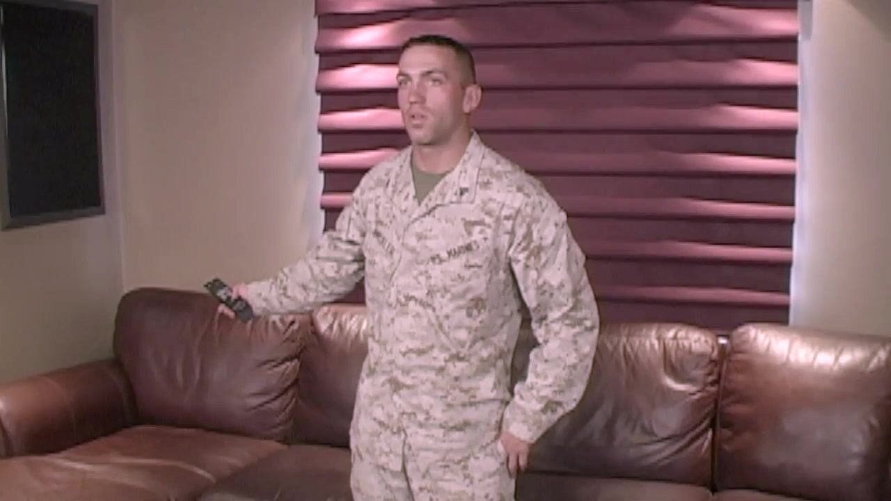 A heterosexual military man gets blown by a Fleshlight.