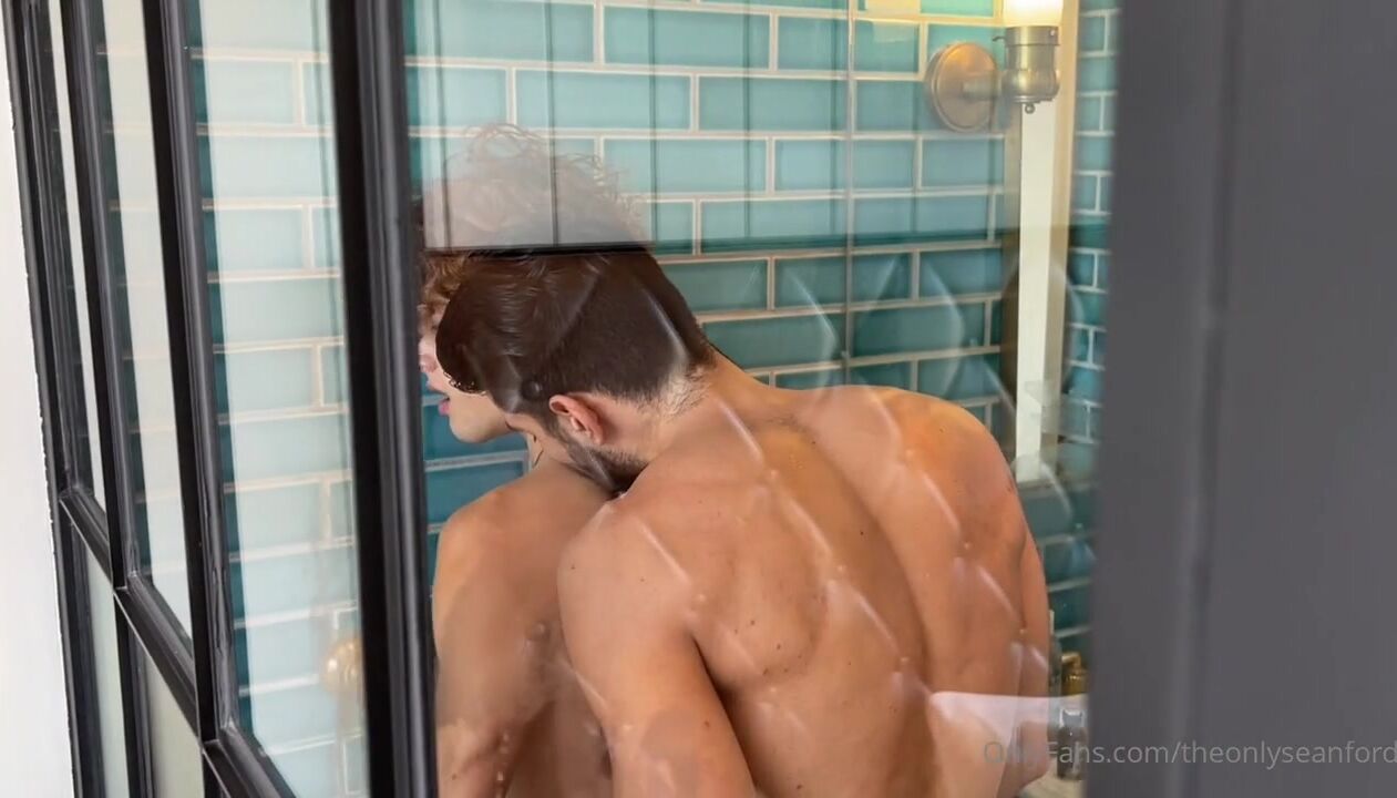 The handsome Sean Ford gets fucked in the shower by a hot brown-skinned athlete. A well-built muscular man.
