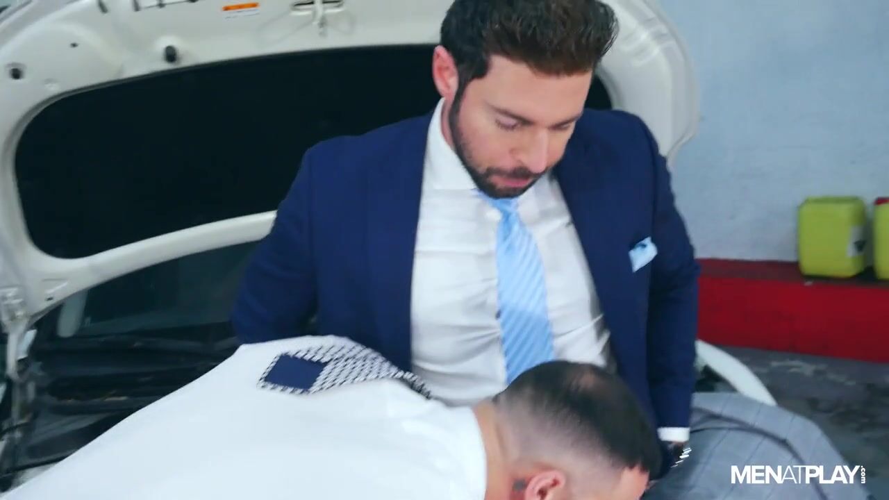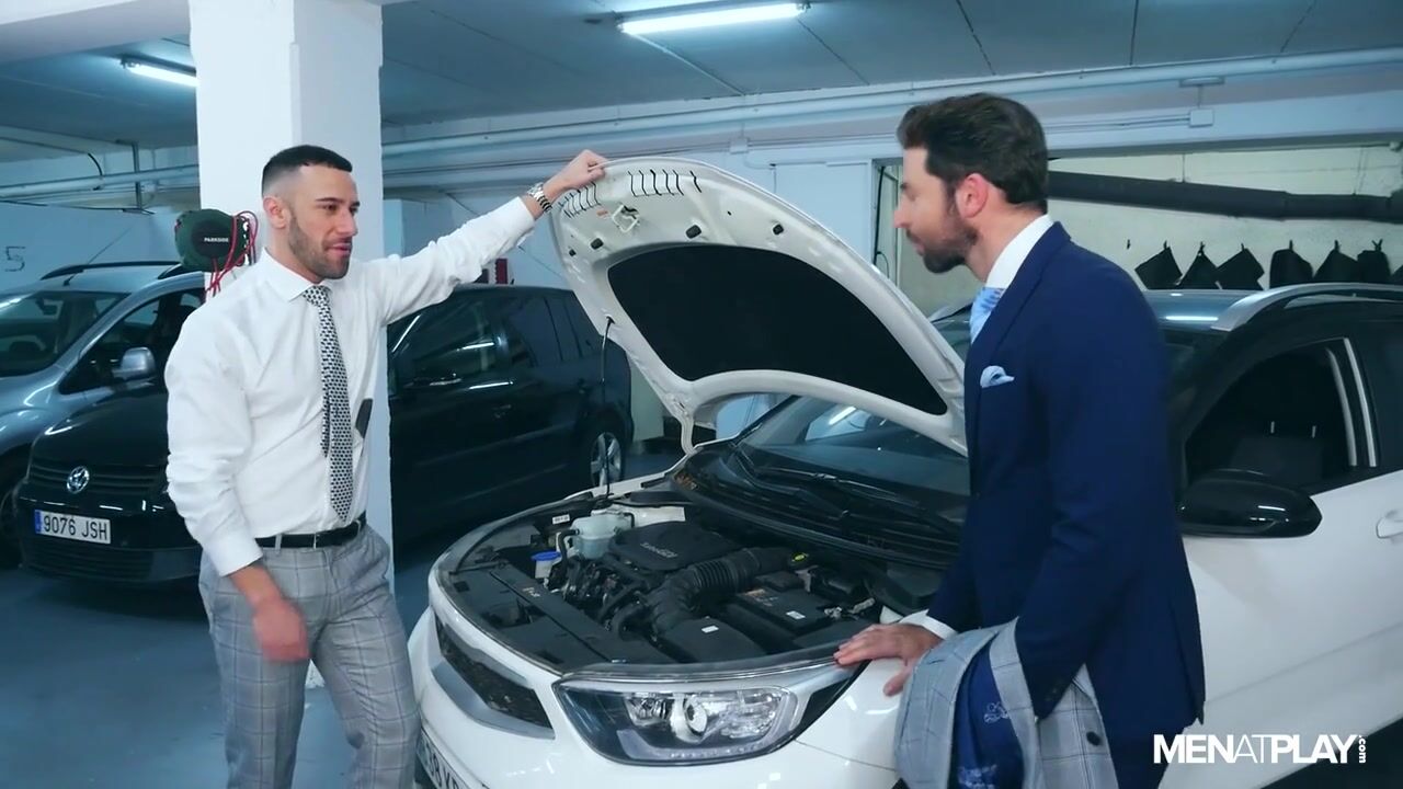 Gustavo Cruz finishes his auto repair workshop when he receives an important call to attend an event. Fortunately, he brought his suit with him. When he changes from his work clothes to a formal suit and is ready to leave, Gustavo sees a man, Dario Beck, in the street who struggles to start his car, and decides to help. After checking the vehicle outside, he offers to push Dario's car into his shop for an appropriate inspection. Inside, Gustavo asks Dario to hold his coat while he works and eventually takes off his sweaty shirt! After catching Dario looking at his coat, he asks if he likes seeing him sweaty. Based on Dario's erection, he is ready and willing to play with the mechanic.