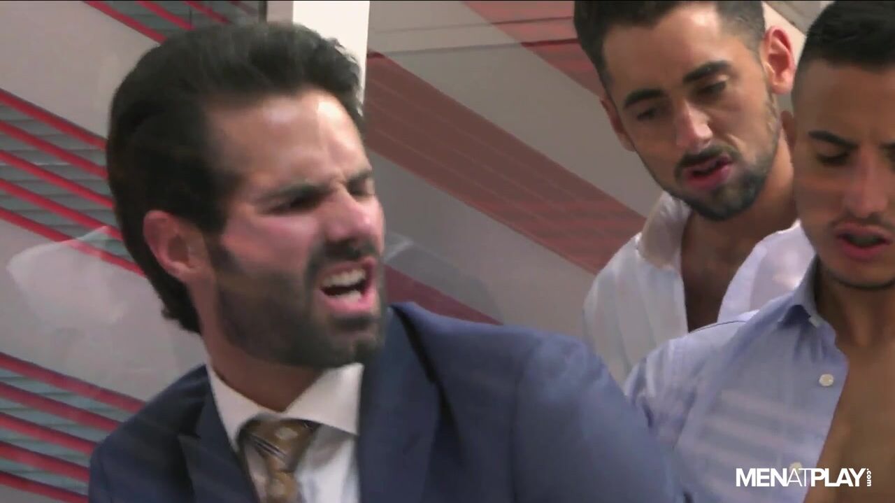 Massimo Piano, Klein Kerr and Dani Robles star in one of the most popular male threesome videos from M.A.P! At the office, Massimo catches his boyfriend and colleague Klein watching gay porn again! When Dani stops by, they ask him if he has ever tried something similar. And of course, he has and is more than willing to show them - right at the office! Massimo and Klein feed their hungry mouths with cum, while Dani takes care of their delicious uncut bits, and Dani enjoys himself with them. The couple kisses Dani's mouth until he almost chok*es, exchanging bites to absorb deeply, then thrusting both at once. Then it's Dani's hole that gets pounded by Massimo and Klein, who take turns burying their tongues deep into each other's asses before exploding with the most impressive cumshots (both together!). But the pleasure is so intense that it's impossible to contain, and finally, the guys let loose the most incredible loads (together again!) covering Dani completely with their hot and delicious cum.