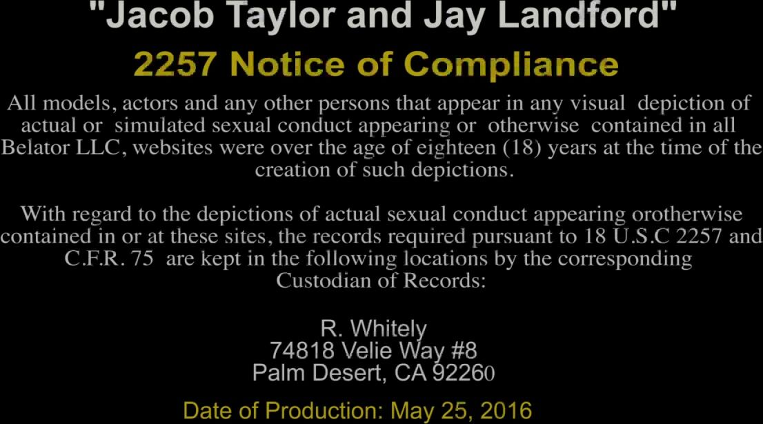 "Muscular Latino bodybuilder Jacob Taylor receives his first bareback cream pie from strapping stud Jay Landford. Jay makes his debut on Randy Blue and knew exactly who he wanted to give a hot blowjob - Mr. Jacob Taylor. They start with sensual kisses, then Jacob takes control and begins sucking Jay's cock. Then, Jay returns the favor with a hot pipe. Jacob and Jay take turns. Jay cums hard when he gets a deep throat from Jacob. He's nervous for his first ass fuck. But once he gets it in, he cries out loud. It feels good to finally get a dick up his butt. Jay wants more and more power, they are bareback strong and hard in doggy style position. Jay rides on top then ejaculates all over Jacob's chest. Then Jacob pulls out and jerks off onto Jay's face. Finally, he fills up Jay's ass with cum. After that, Jacob retires and cums on Jay's stomach. The whole bed is covered in sperm."
