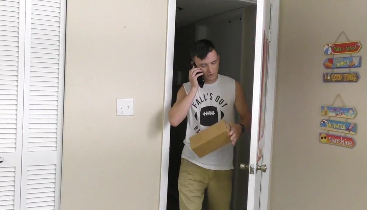 When Jakeb receives his new Fleshjack through the post, he is so excited to use it for the first time. He takes off his shorts and starts watching porn, then takes the box out and starts masturbating. Tyrese walks in unexpectedly and surprises Jakeb, who tells him to hit first. Tyrese reminds him that he needs a turn, so Jakeb agrees to give him one if Tyrese pleases him first. Jakeb puts the Fleshjack aside and lets Tyrese suck his dick. Tyrese takes every inch of Jakeb's cock in his mouth, slowly moving his tongue from top to bottom of Jakeb's shaft. The boys take off all their clothes and switch positions, and Jakeb gives Tyrese a nice and slow blowjob that makes his eyes roll back. Both are now in high spirits as they kiss passionately, Jakeb mounting behind Tyrese and pounding him on the bed in doggy style. The face of Tyrese is buried in the sheets as he takes Jakeb's cock, groaning with pleasure. He turns around and looks at Jakeb in the eyes while Jakeb fucks him. Feeling Jakeb pushing inside of him brings Tyrese to a powerful climax, which forces Jakeb to pull out and add his own load also. The Fleshjack remains on the side of the bed as the boys catch their breath.