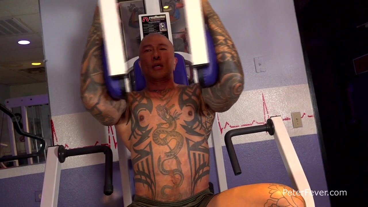 Hot Asian fitness model Damian Dragon and lean gymnast Irez continue to work out in the well-equipped training area of Hawks Gym in Las Vegas, with Damian flexing and pumping his tattooed chest on the inclined bench. Lean gymnast Des has to choose a lighter weight but still gets a good pump on his sculpted chest. Then, his erection begins to grow as Damian counts down reps. The sexual tension increases, they move to the pectoral bridge, and now Des is the one with a swollen jockstrap. Damian extends his hand to rub his hands on the pumped pectorals of Des and moves in for a kiss. He lowers his pants and feeds his uncut cock to Des's hungry mouth.