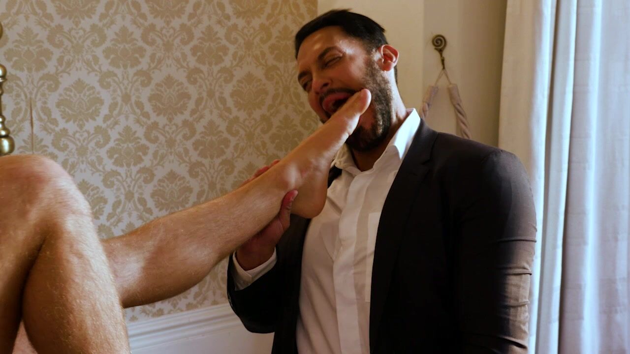 Viktor Rom worships Manuel Reyes' feet in Alpha Foot Adoration: Viktor Rom is attracted to men who know their place when he is with them in the bedroom. He is on top, and they are on bottom. And Manuel Reyes wants to submit himself to Viktor and give him a good ass-fucking. But before that, Viktor takes his time to kiss Manuel's feet slowly and give them some oral attention!