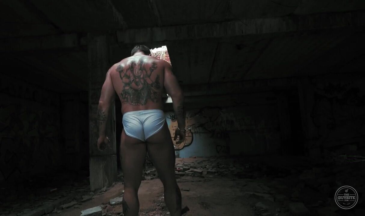 This erotic gay video features a Russian bodybuilder in his simplest outfit.