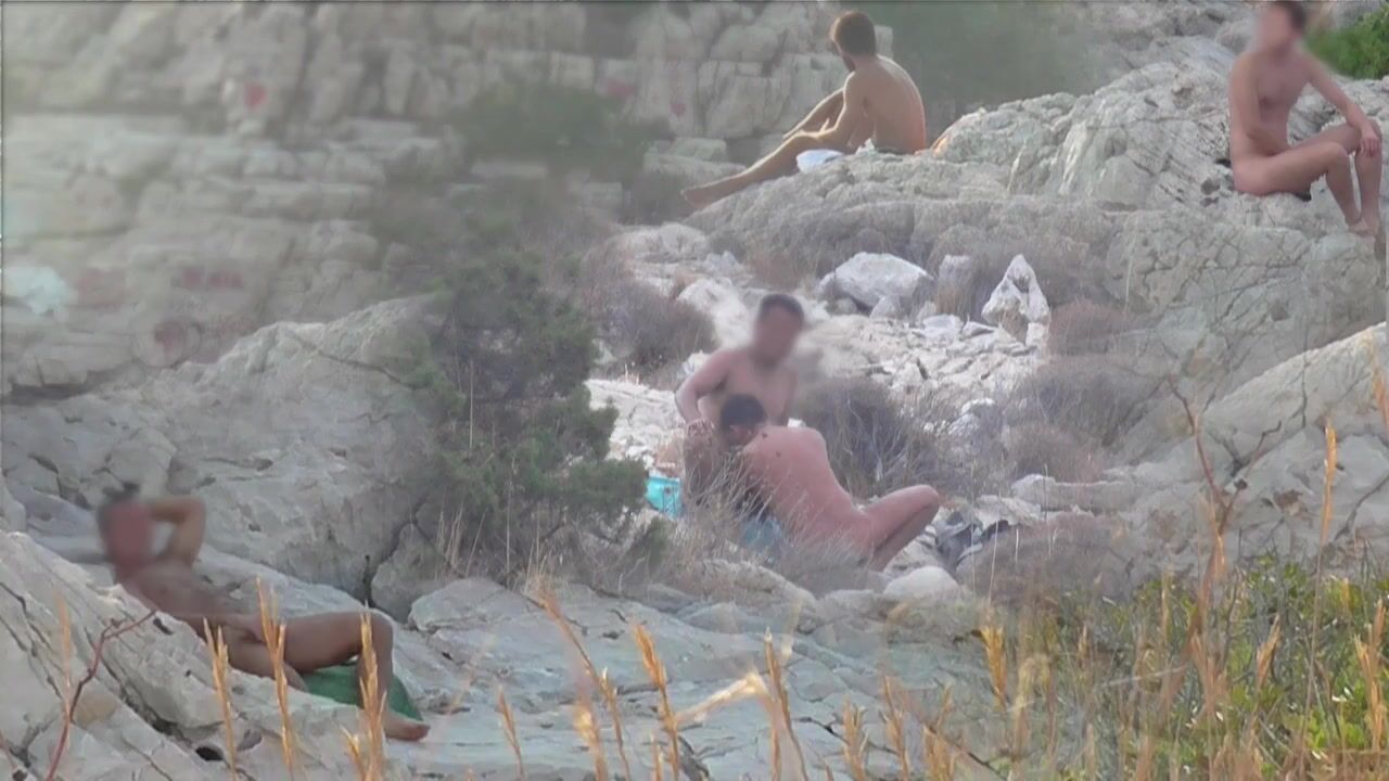 Hidd*en camera near a natural beach in the Canary Islands known for its sulfuric environment. Men are having sex on the beach.