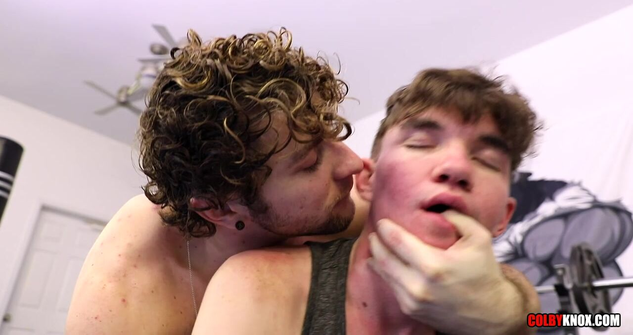 Here's a new gym session with ColbyKnox! This one features Calvin Banks and Levi Hatter. Calvin gives some advice to Levi on working his abs and legs. Levi is wearing a T-shirt and jock, and follows Calvin's instructions carefully. Calvin's hands are never far from Levi's ass. As Levi stretches out one leg, Calvin points at it.