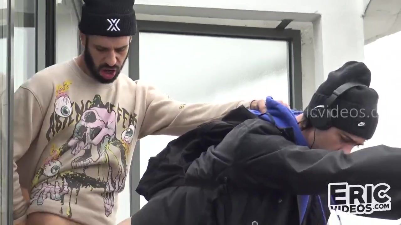 It was morning and Roméo had his legs spread on the balcony while he cleaned his dick while drinking coffee. He didn't know that the woman's cleaner would enter the apartment and be shocked by the scene. But the guy of the house was a horny slut, after showing off his ass Roméo made him come and suck on his big dick.