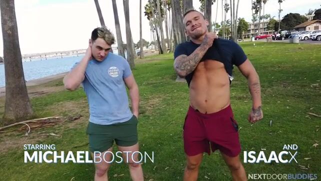 After playing football, Michael Boston and Isaac X have sex.