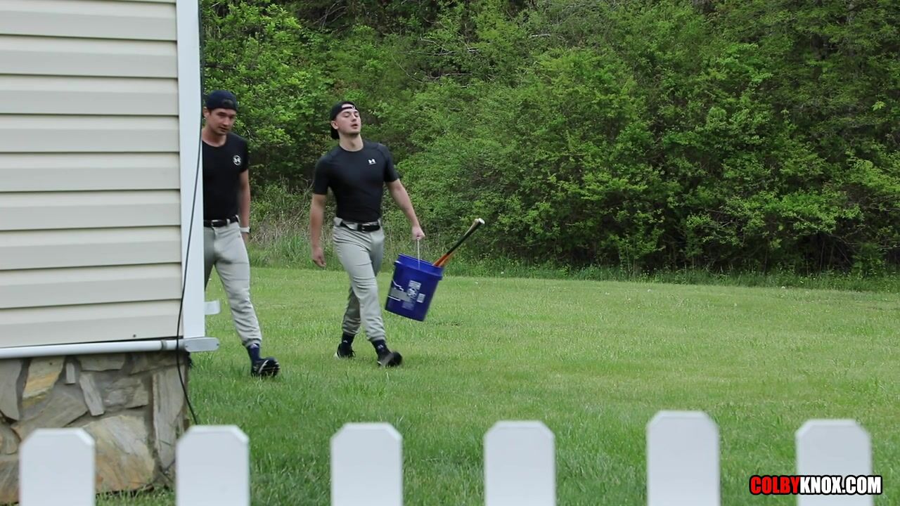 Reformulation: ColbyKnox, Colby Chambers and Masyn Thorne are back from baseball training. On their way to the diamond, they played an intimate game of bats and balls. You can say that Colby had a good time because his dick stretched obscenely the fabric of his pants. Jack Valor is patiently waiting for his teammates. Colby and Masyn enter the garage. Jack explains he missed training due to rain. Colby has to retrieve something from the car, leaving Jack and Masyn alone.