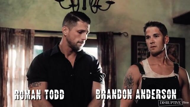 Brandon Anderson and Roman Todd, employees of the ranch, are having sex outside.
