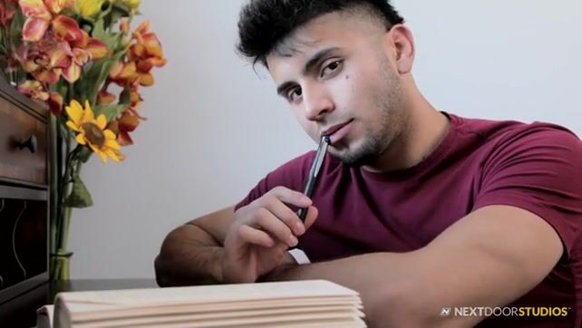 Horny Hunter takes a break from studying by jerking off at his office.