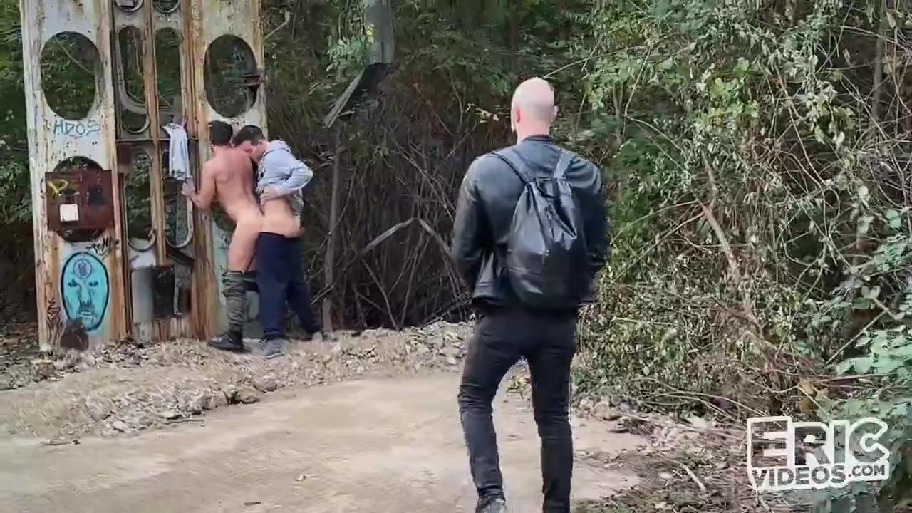 10 years later, Blue discovers the incredible outdoor sex place and upon arrival he sees a guy getting blown. At first, he just watches from afar, then approaches and eventually crashes in. The two studs plant their seed on the submissive ass that is about to get drenched with cum.