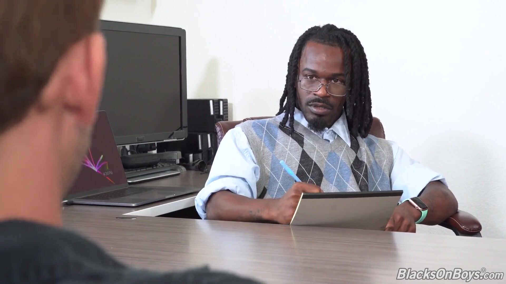 Roman Todd takes interview to next level by worshipping 2 black dicks and getting his ass damaged