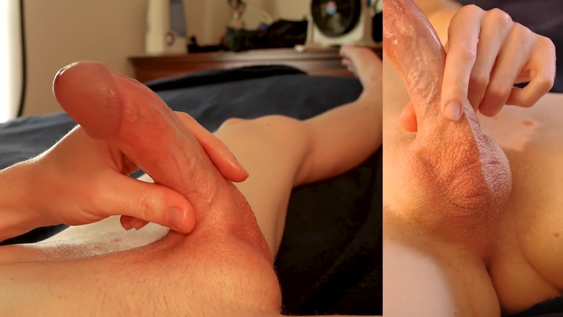 Edging with ASMR sounds, taint throbing, glans pumping with dripping precum