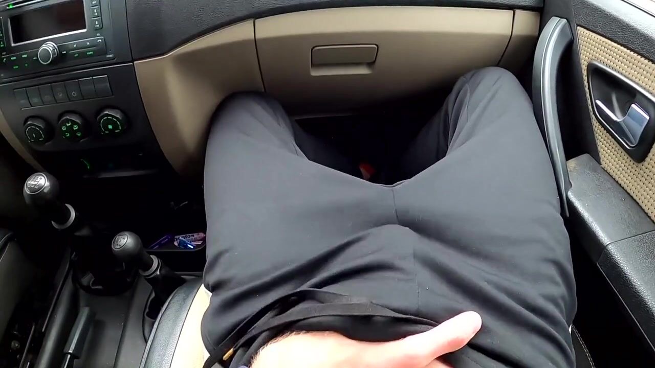 guy jerking off cock in the car