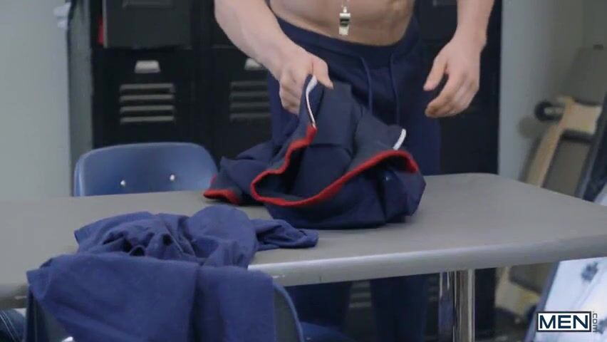 Description of the gay porn video: Michael DelRay is a nerd, despite having a good body and a huge dick, he always suffers from intimidation in the locker room. When coach Scott DeMarco surprises Michael naked and drunk in a closet, he decides that Michael could use a win. Muscular coach
