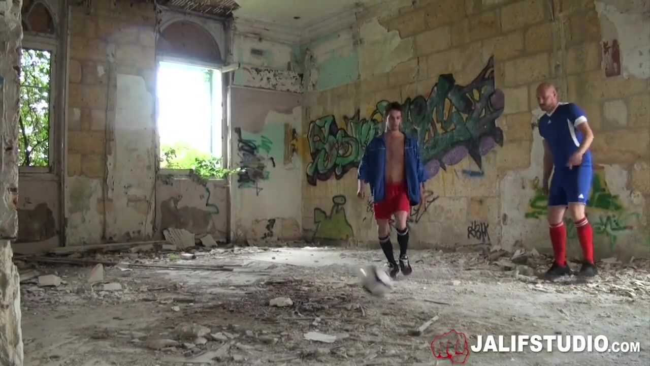 In a discreet corner near a park in the Parisian region, a coach pulls out his dick and gets sucked by his pupil, a young football player. After being well licked up, he turns him around and kisses him in capote against a wall of tags.