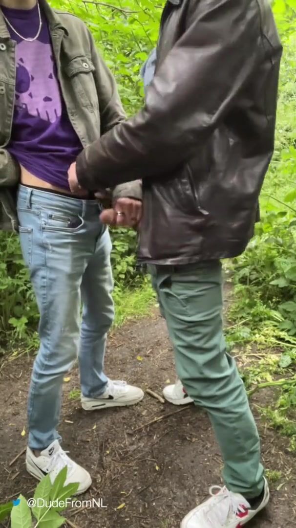 Jerked off in the park but got busted by a cute twink, gladly he didn't mind to help!