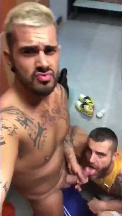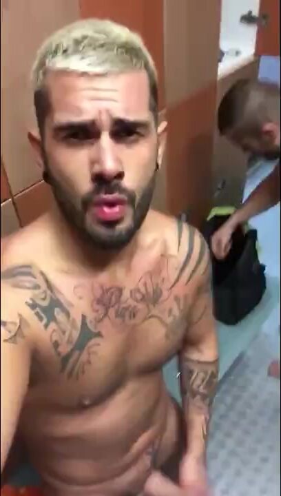 A muscular bear sucks the cock of a heavily tattooed sailor until he ejaculates in his mouth.